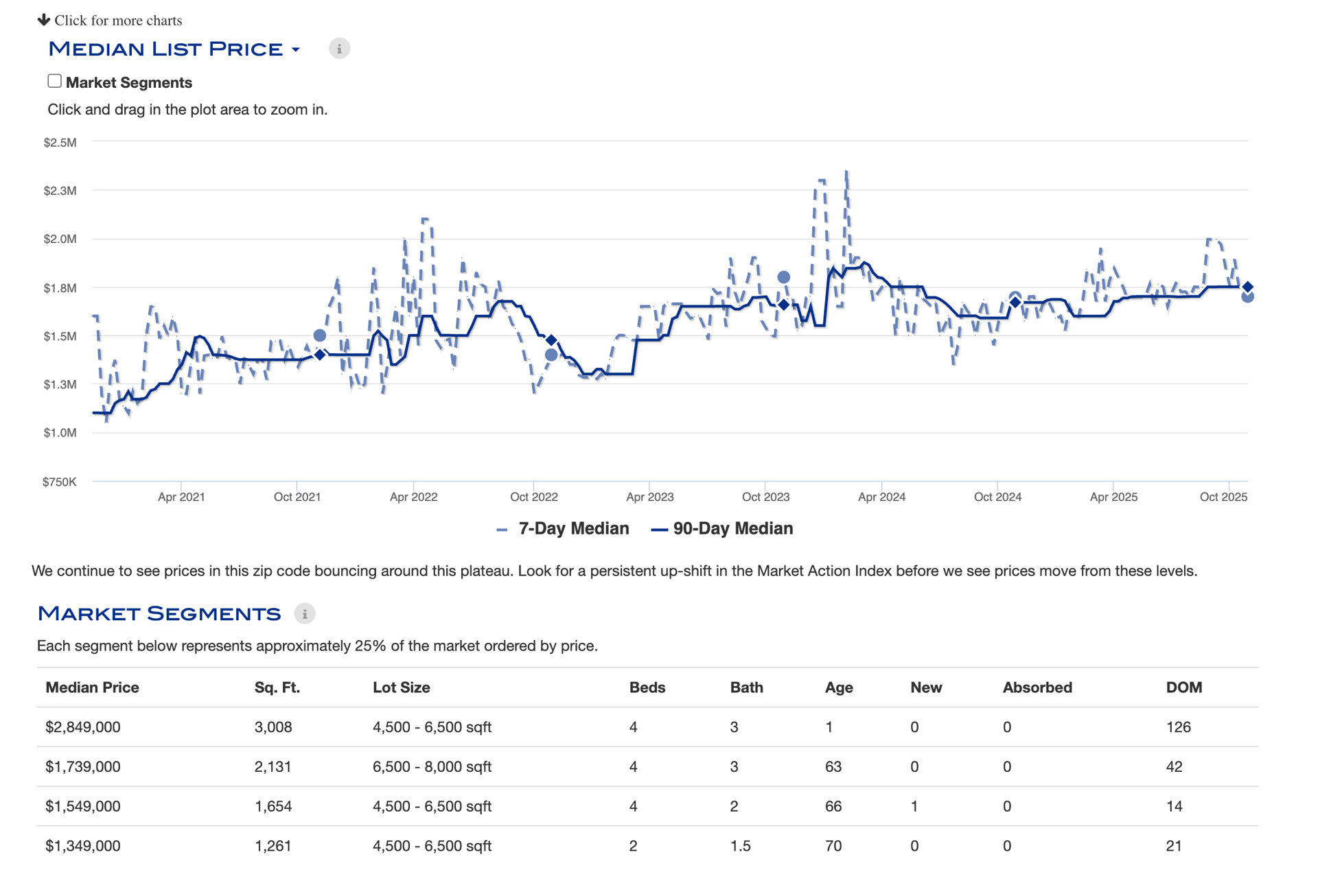 A: Detached homes average around $1.7 million, while condos list near $684,000, based on Altos Research. These prices reflect a stable market with minor fluctuations since mid-2025. Single-family homes remain in high demand, while condos provide a more affordable entry point for buyers.
